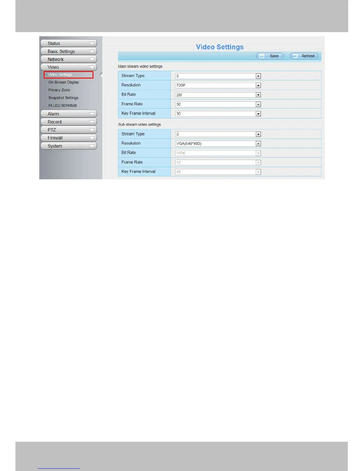 Frame rate: Note that a larger frame size takes up more bandwidth. When the video format is 50Hz, the