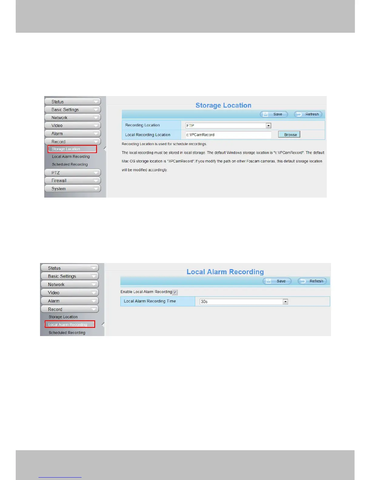 On this page you can change the manually recording storage path, the default storage path is D:\ipc.