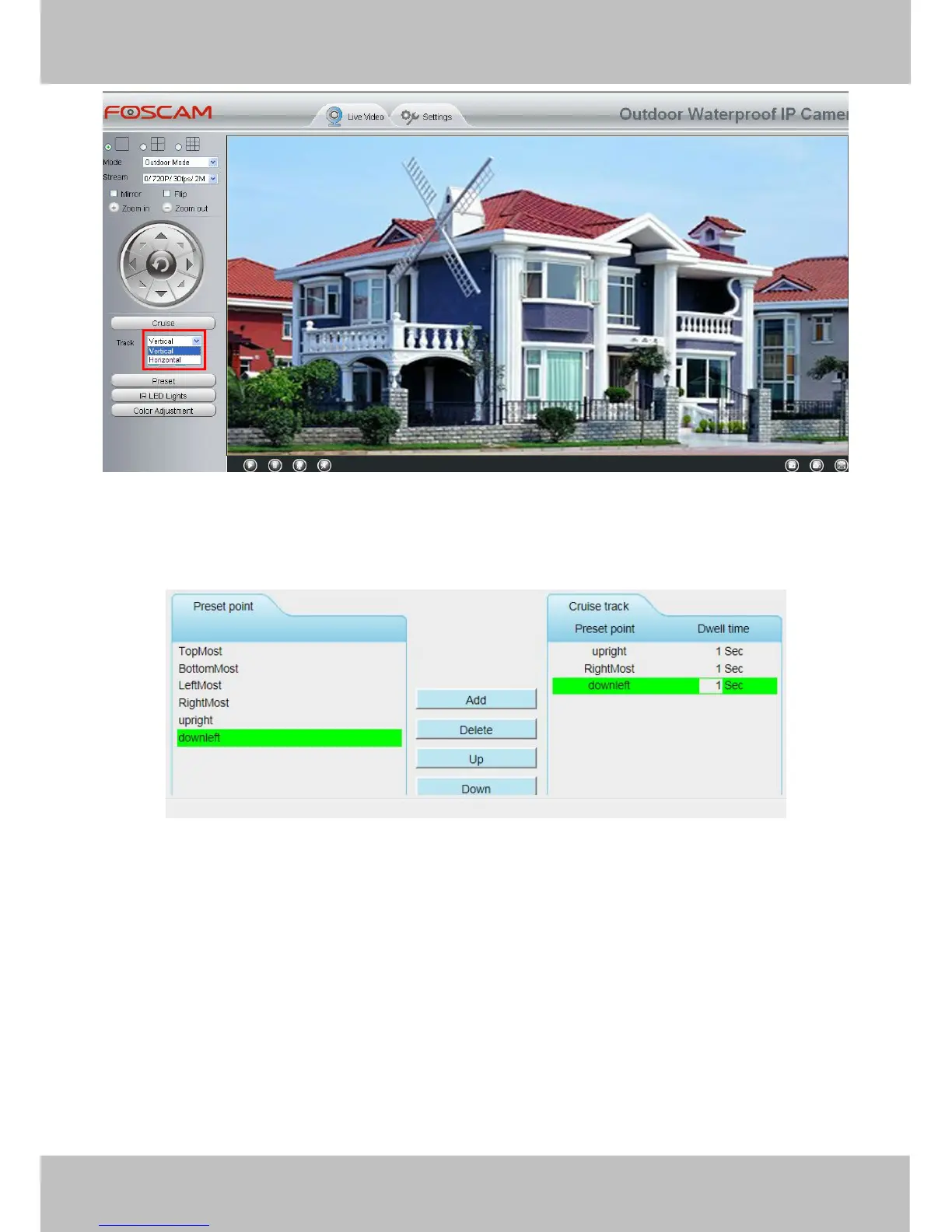 Move up/ down: Select one cruise track, adjust the order of preset points in one cruise track.