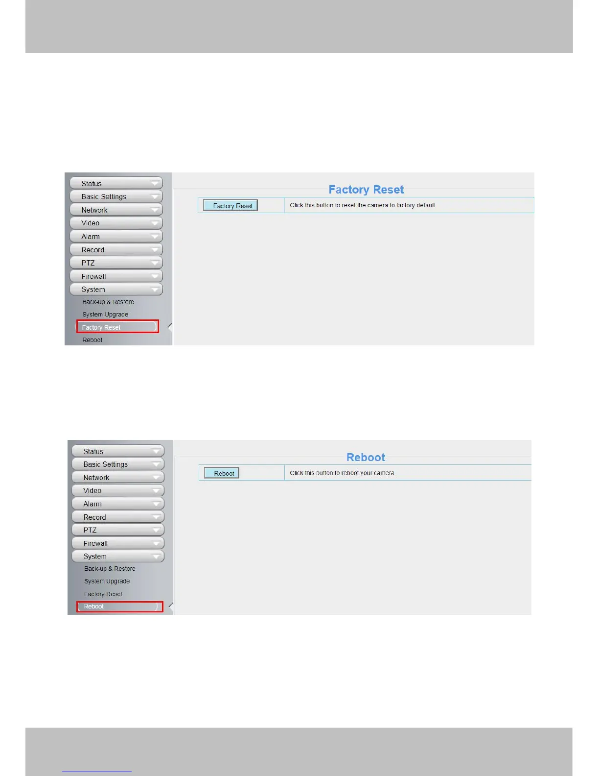 Click Reboot System to reboot the camera. This is similar to unplugging the power to the camera.