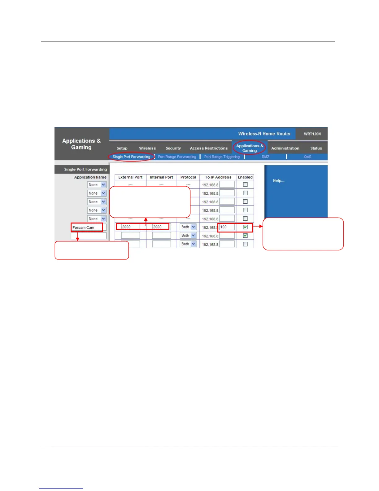 & Gaming menu. We would then click on the “Single Port Forwarding” sub-menu.