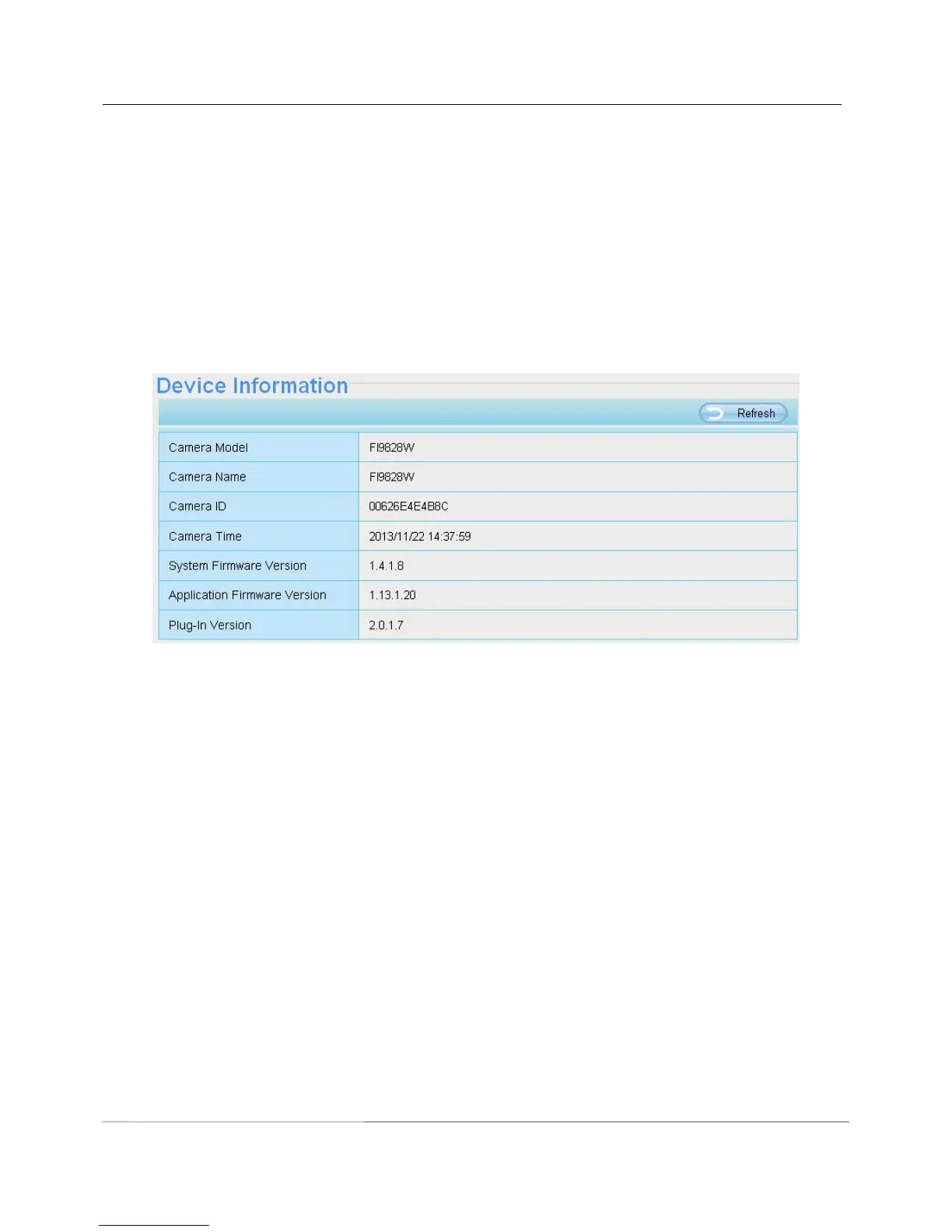 Camera ID: Display the wired MAC address of your camera. For example Device ID is HJYFI9828W03, the