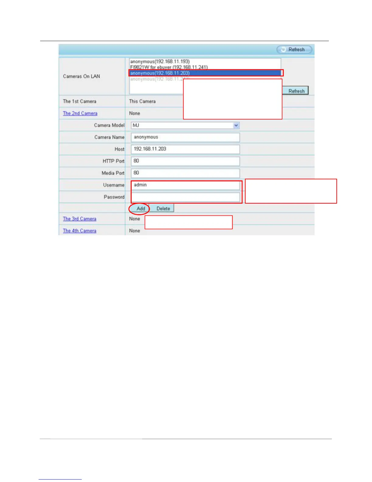 password of the 2nd camera.