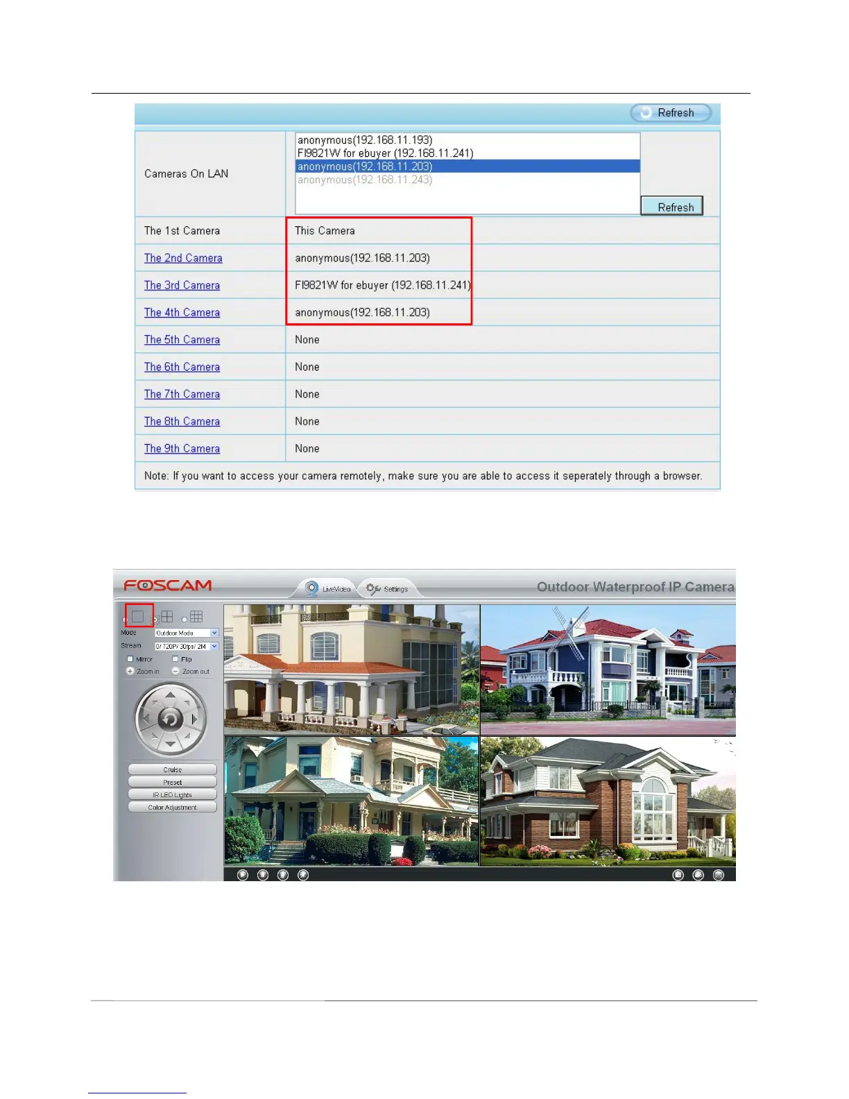 Back to Surveillance Windows, and click Four Windows option, you will see four cameras you added.