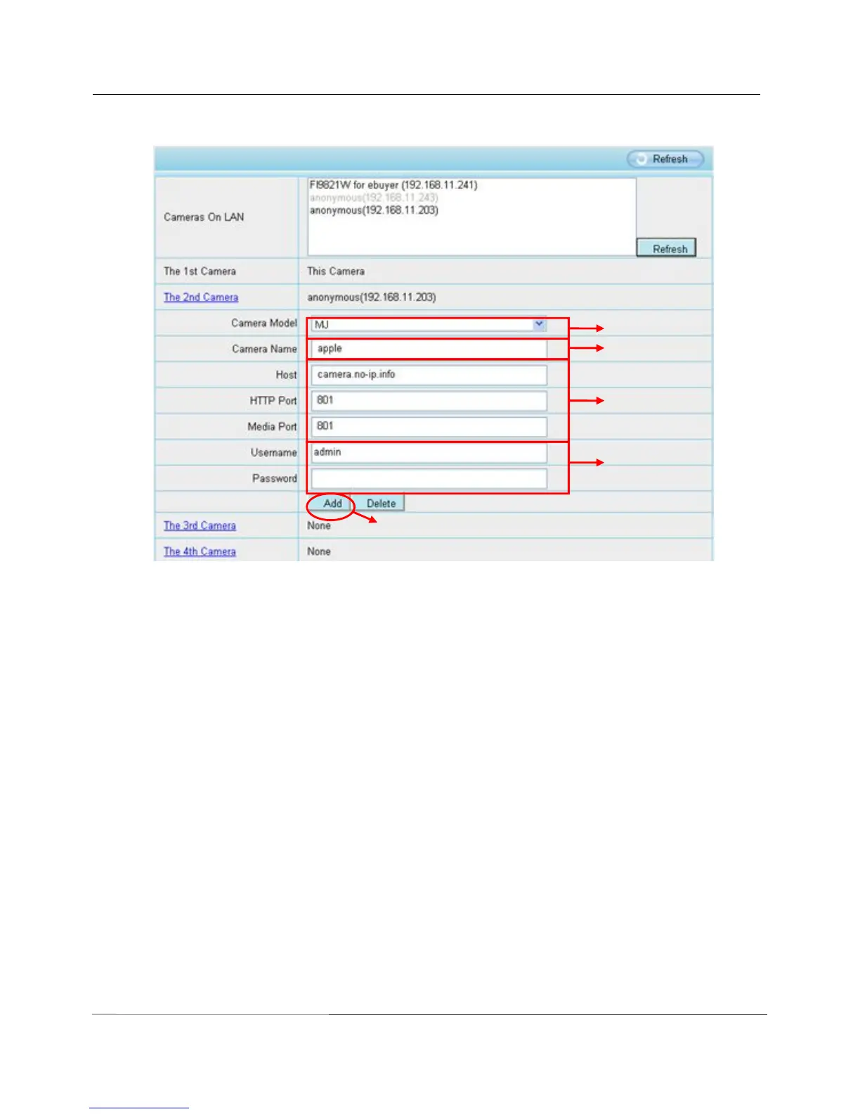 4---- Enter the 2nd camera’s user name and password