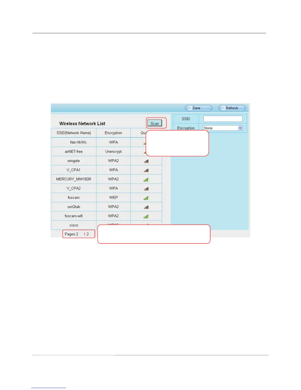 Click the Scan button and the camera will detect all wireless networks around the area. It should also display