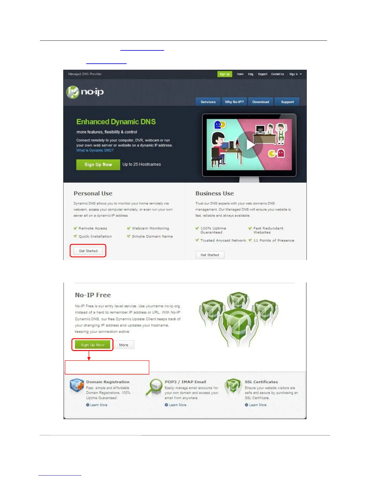 Step 1, Go to the website www.no-ip.com to create a free hostname