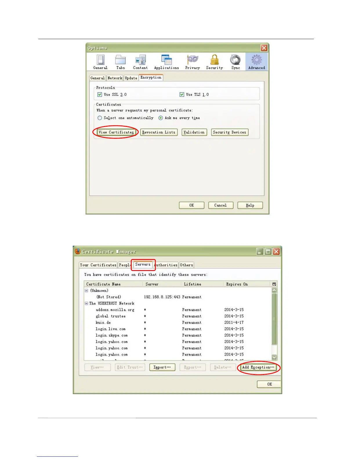 Click View Certificates, and go to Servers option.
