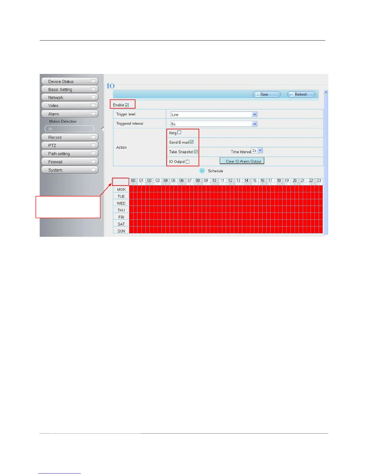 On the IO page, Enable the I/O alarm, select the Send E-mail”and Snapshot before you have configured