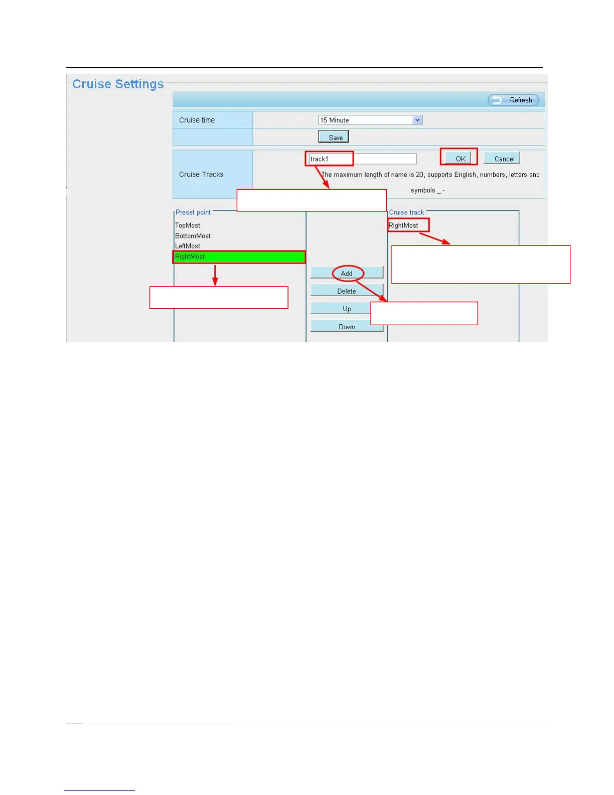 For example: I have added three preset points to the “track 1”, that means : When I select the “track 1” on the