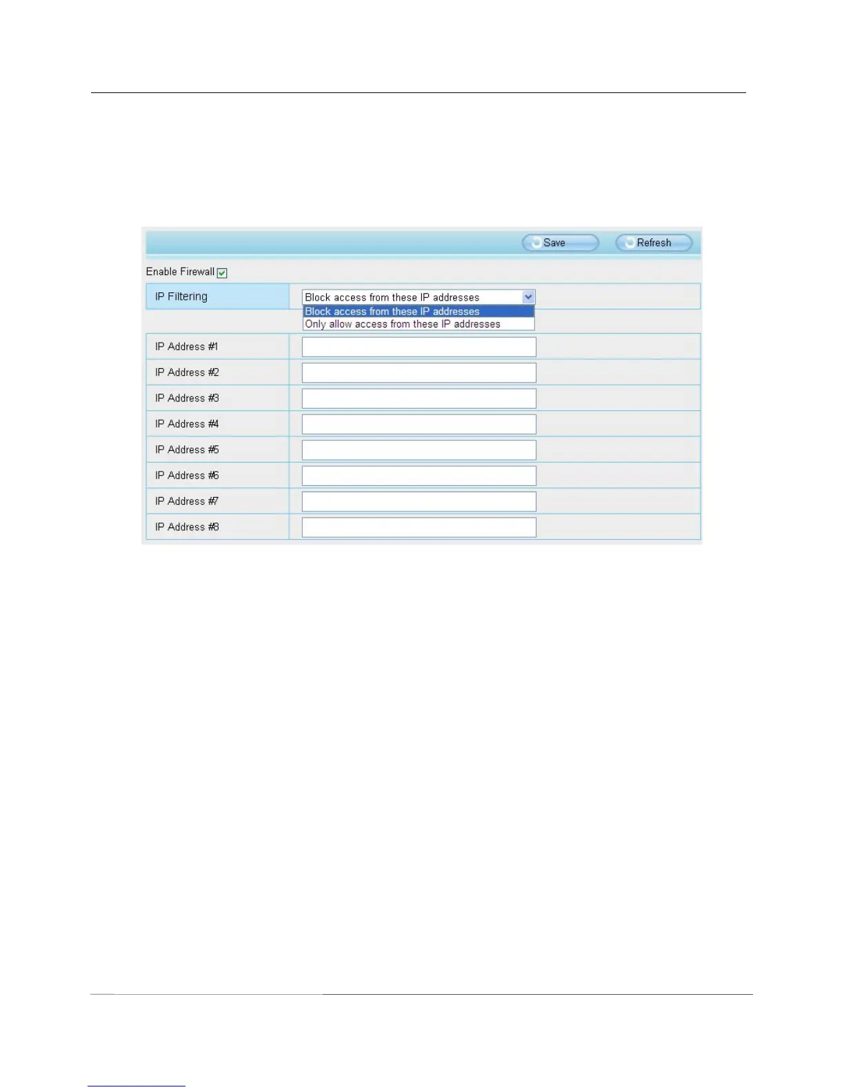 Network Camera. If you select Block access from these IP addresses, only those clients whose IP