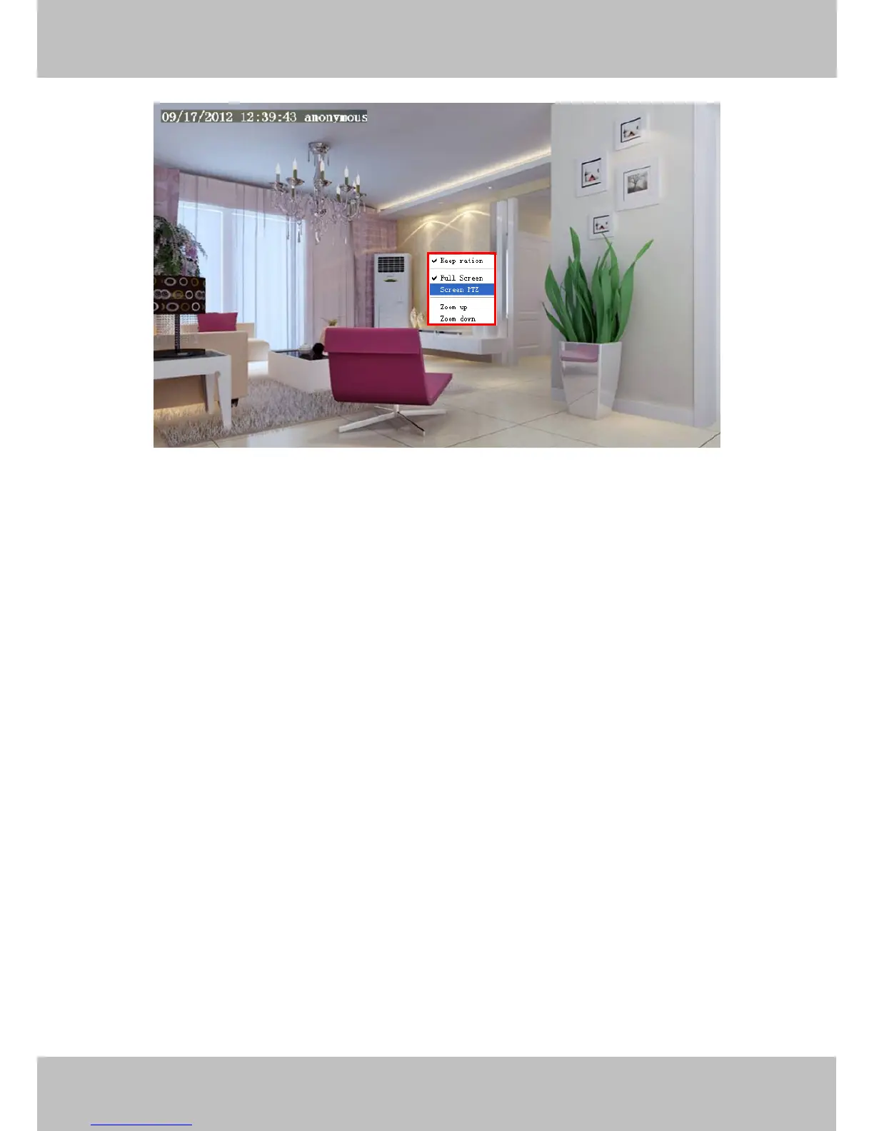 Click the Screen PTZ button and put the mouse on the screen to indicate the camera move direction you