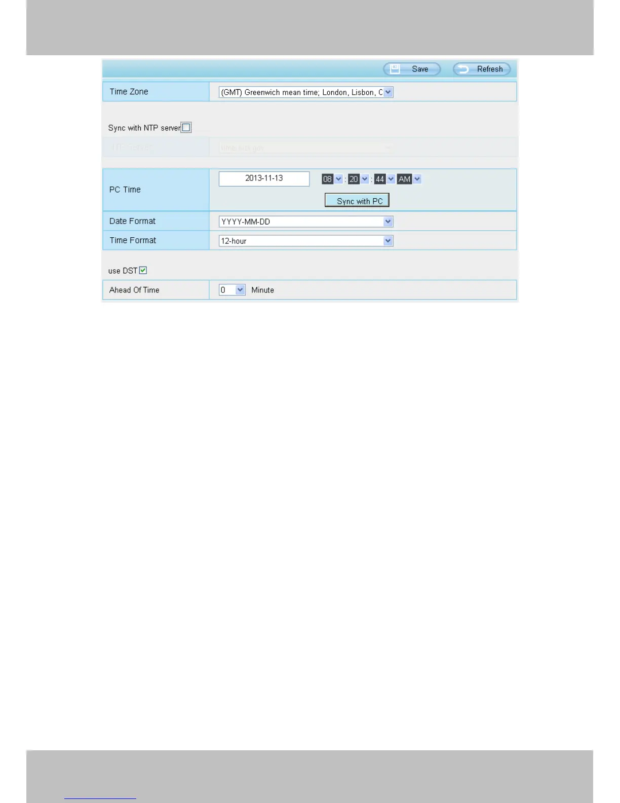 Sync with NTP server: Network Time Protocol will synchronize your camera with an Internet time server.