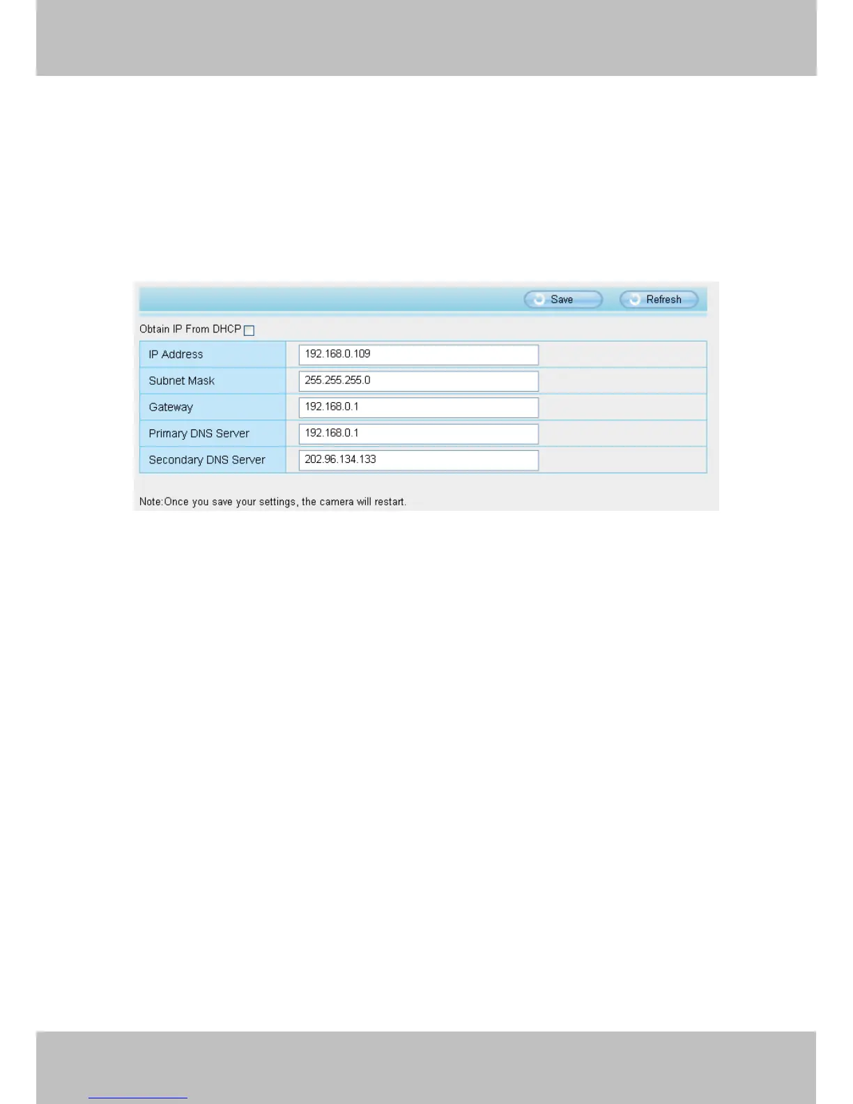 If you want to set a static IP for the camera, please go to IP Configuration page. Keep the camera in the same