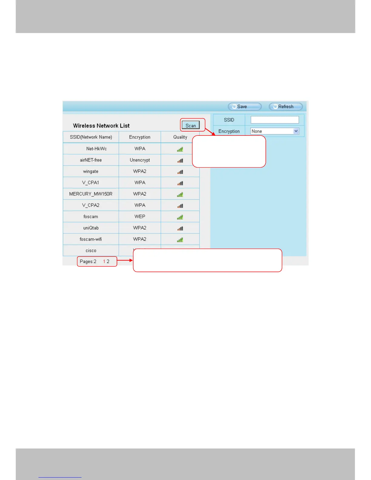 Click the Scan button and the camera will detect all wireless networks around the area. It should also display