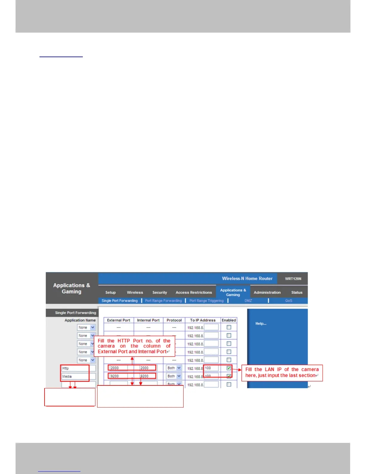 Secondly, Create a new column by LAN IP address & HTTP Port No. of the camera within the router showed