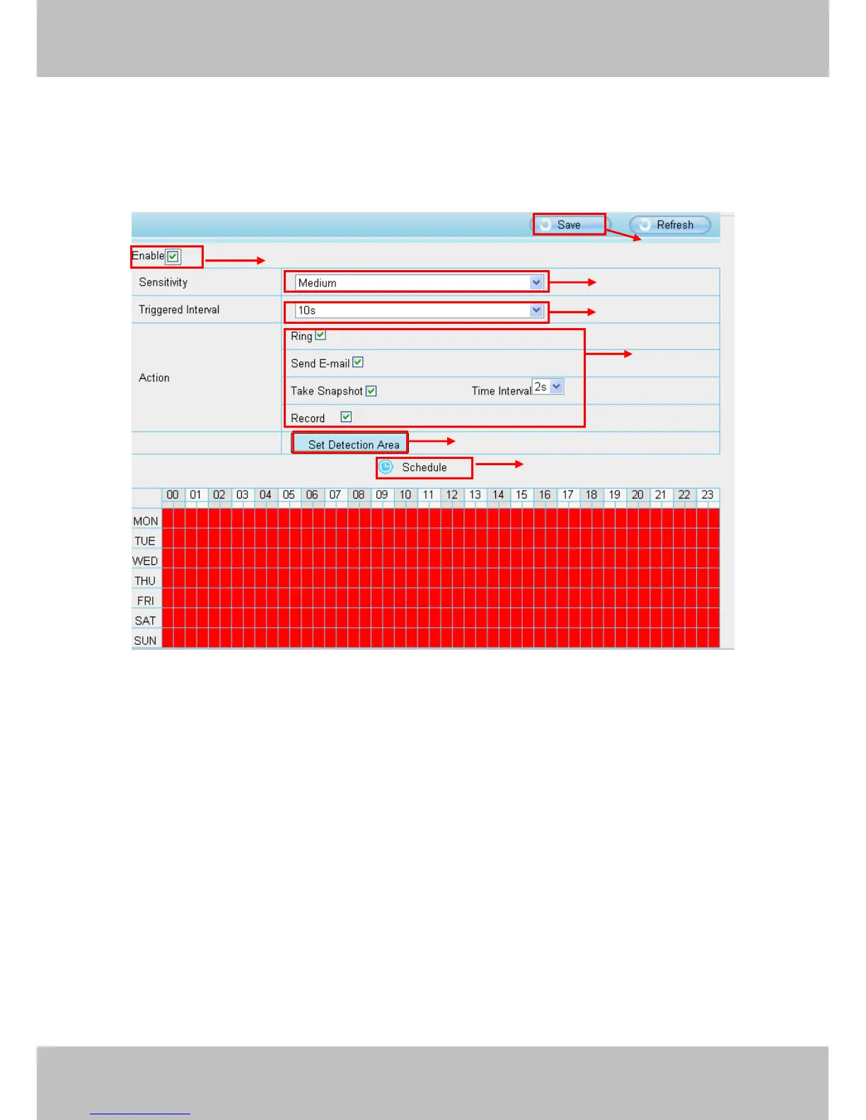 Step 03: Trigger interval--- The interval time between two motion detections. Here supports