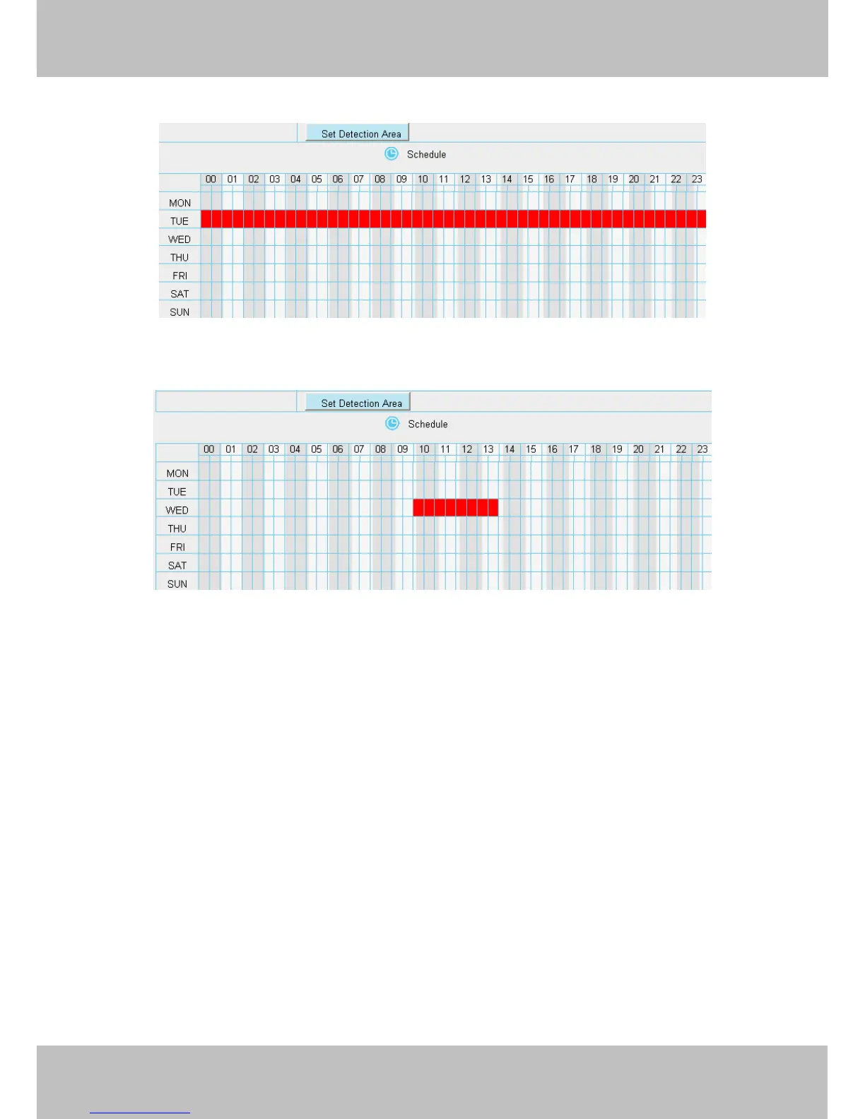 of TUE turns to red, that means during Tuesday whole day, when something moving in the detection area, the