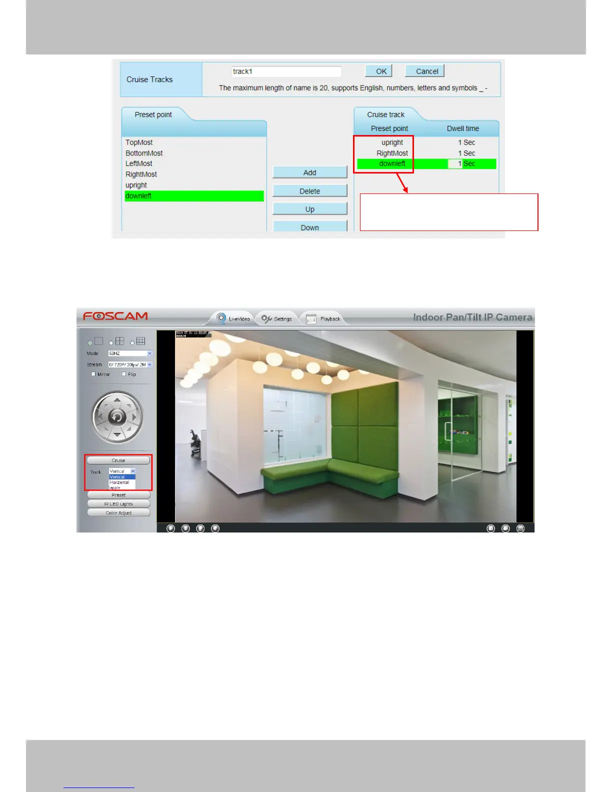 order of preset points or add/delete one preset points in one cruise track. And you can set the Dwell time of the