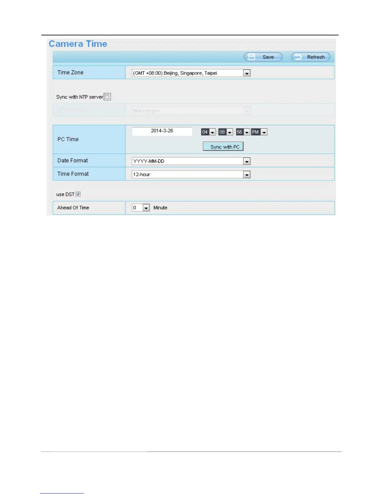 Sync with NTP server: Network Time Protocol will synchronize your camera with an Internet time server.