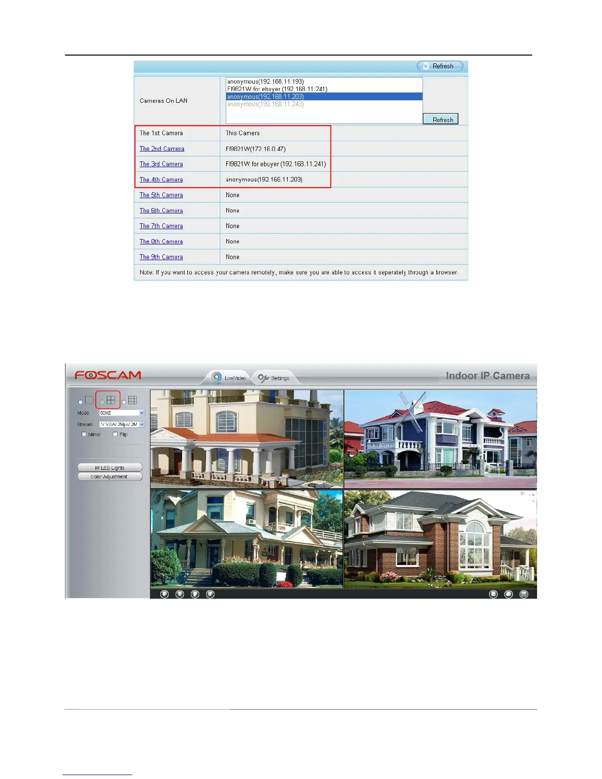 When you are away from home, you can use the first cameras DDNS domain name and port to view all the