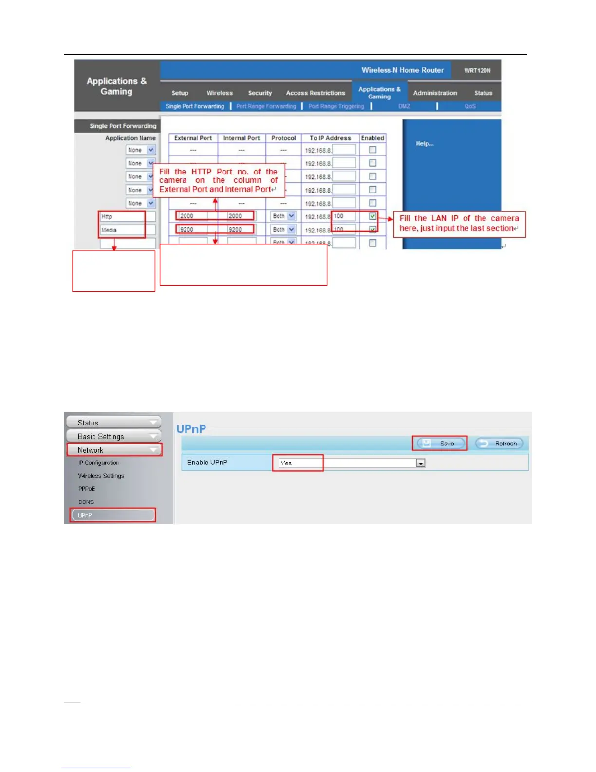The default UPnP status is closed. You can enable UPnP, then the camera’s software will be configured for