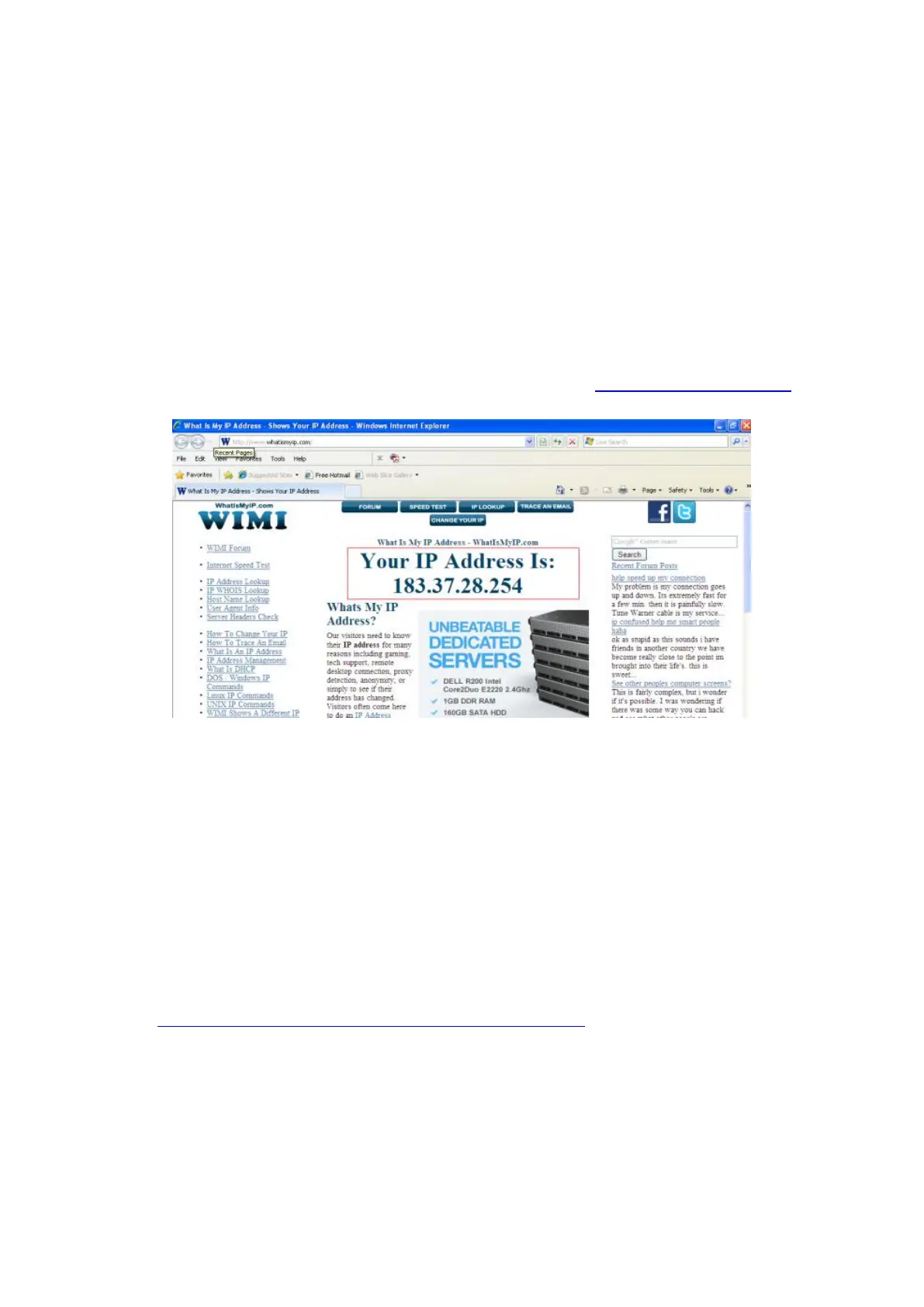 To obtain your WAN IP address, enter the following URL in your browser: http://www.whatismyip.com.The