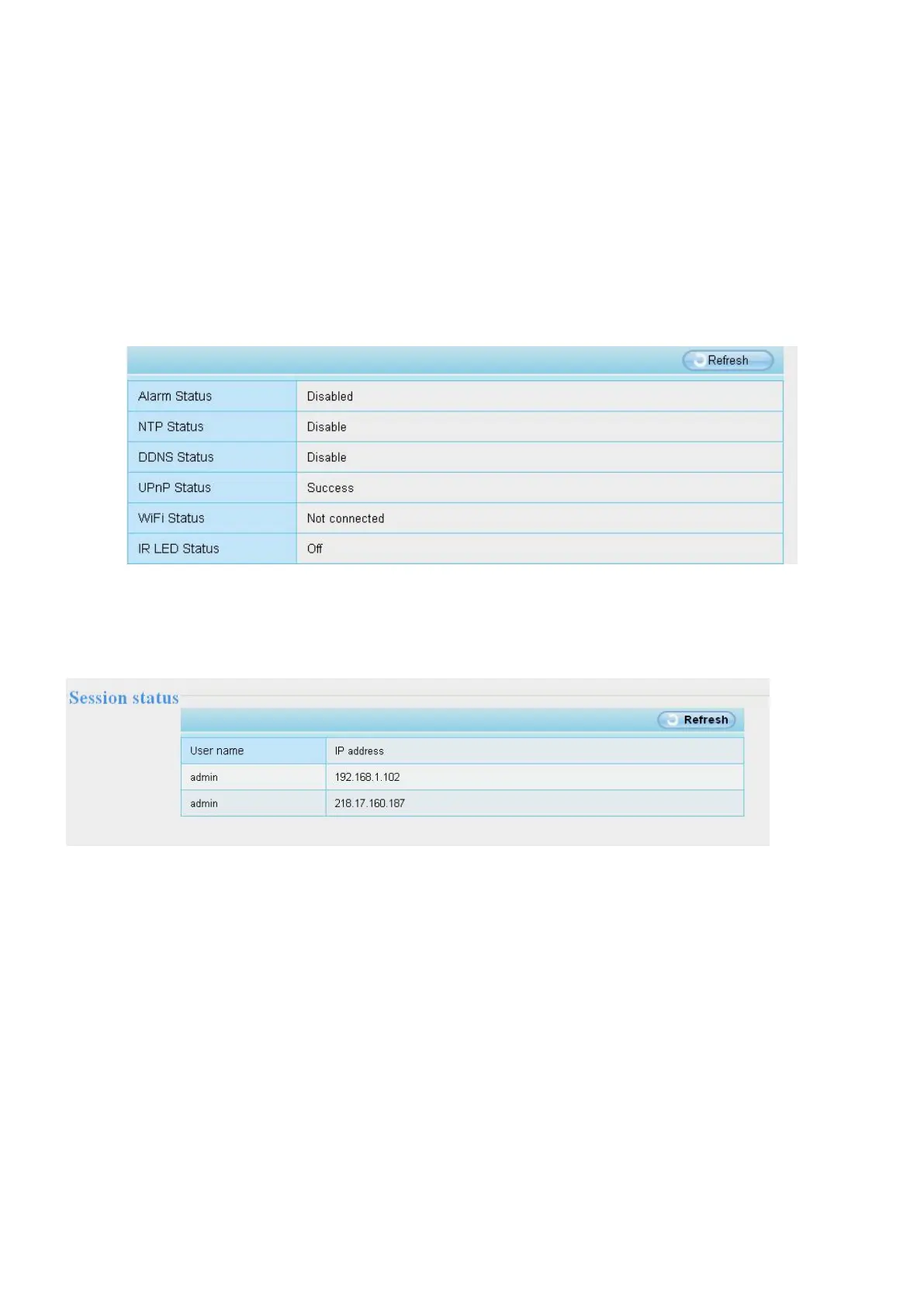 Session status will display who and which IP is visiting the camera now.