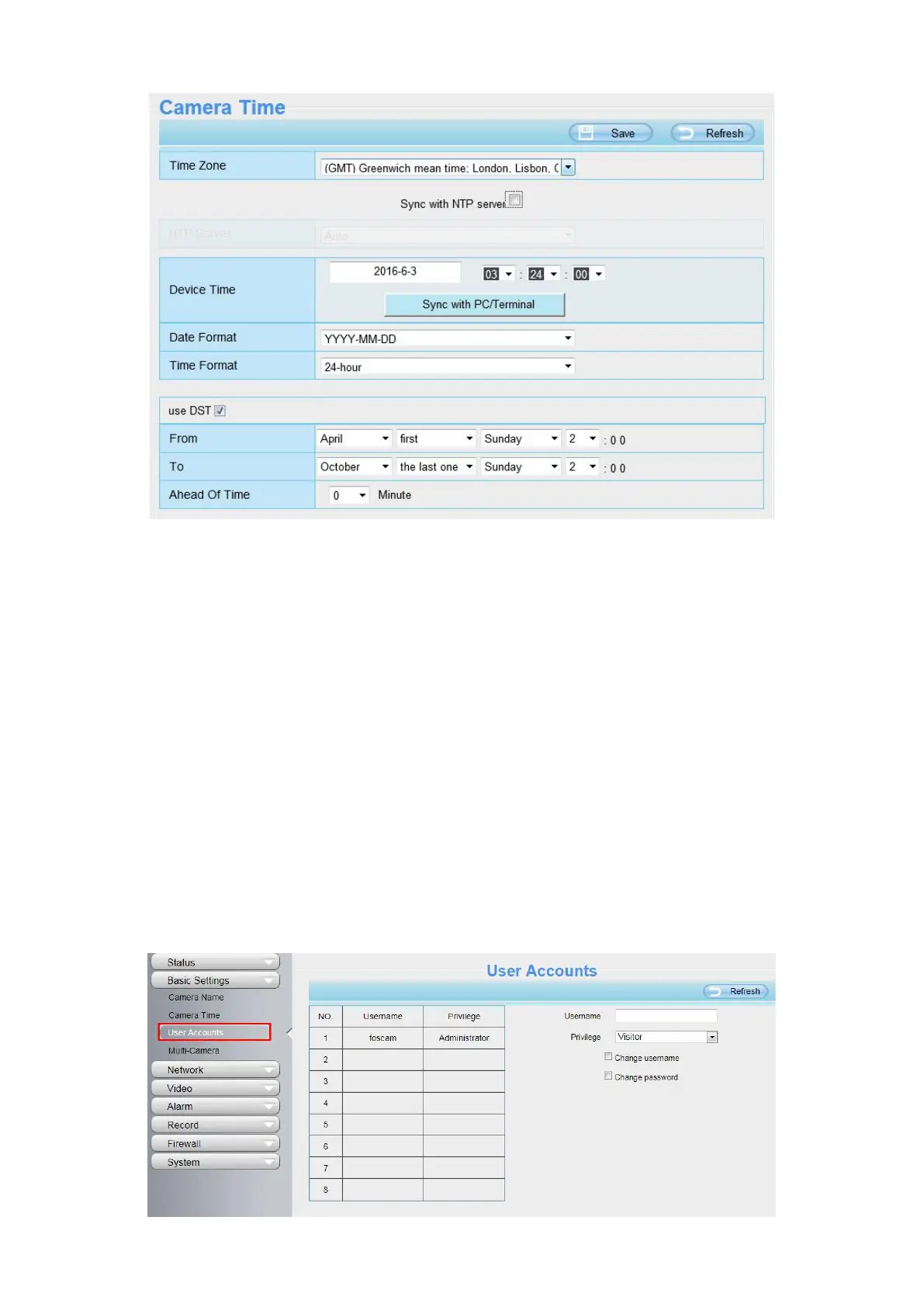Sync with NTP server: Network Time Protocol will synchronize your camera with an Internet time server.