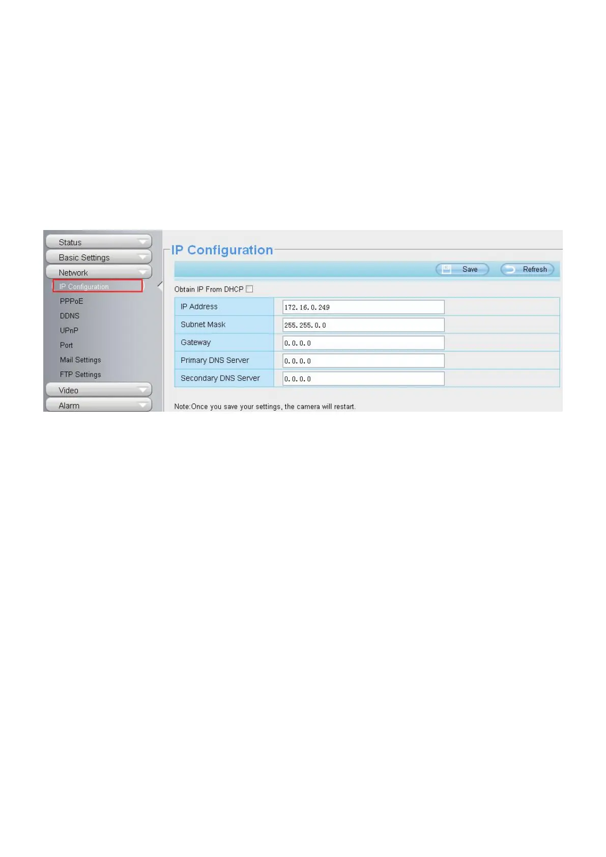 If you want to set a static IP for the camera, please go to IP Configuration page. Keep the camera in the same