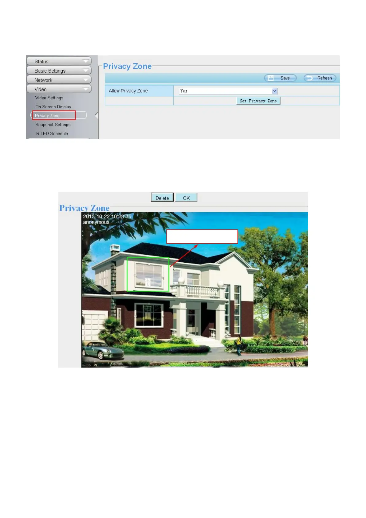 This page is used to add privacy zone on the video.