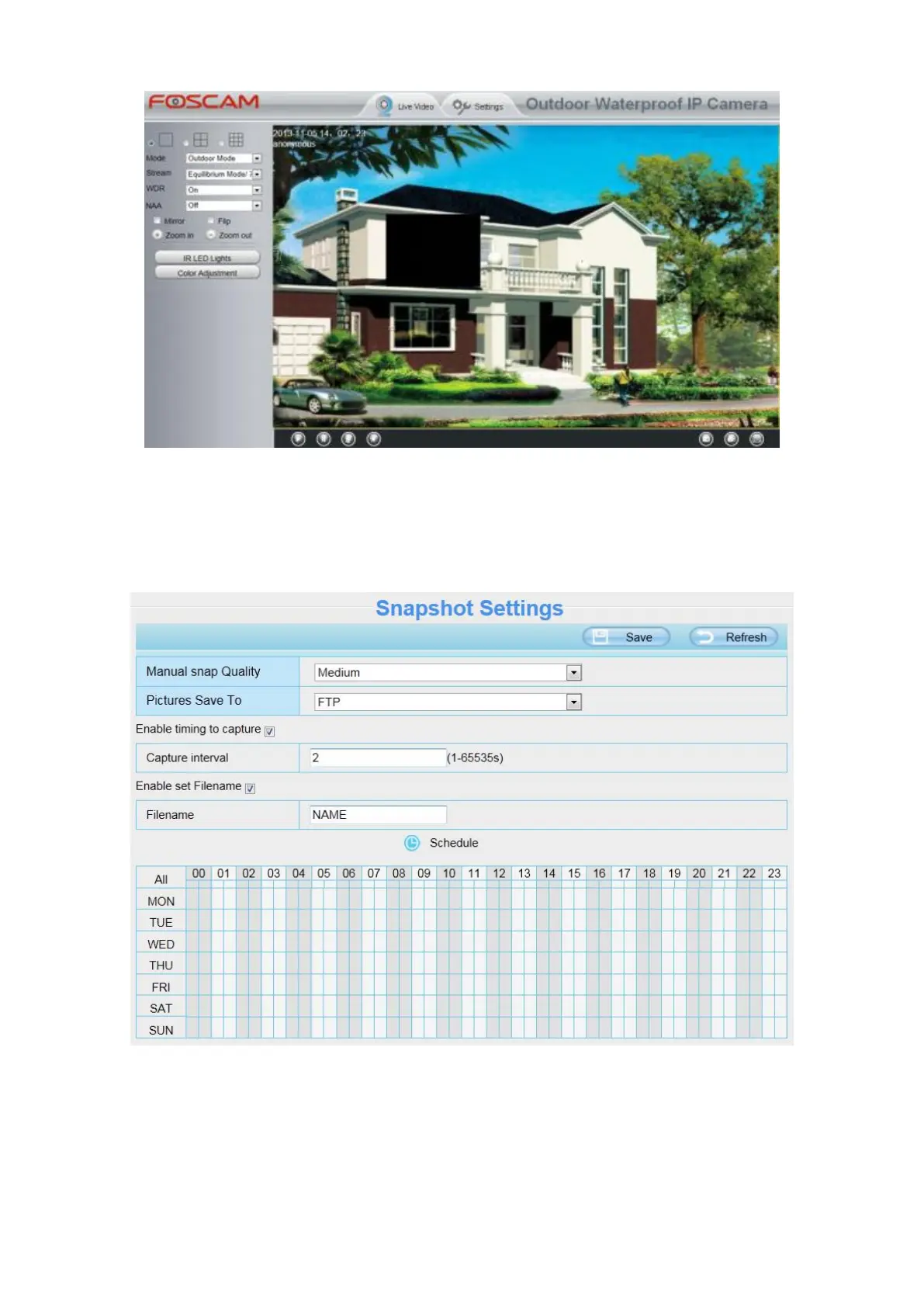 Pictures Save To: FTP or SD card. If you have done FTP and Alarm settings, when alarming, the camera will