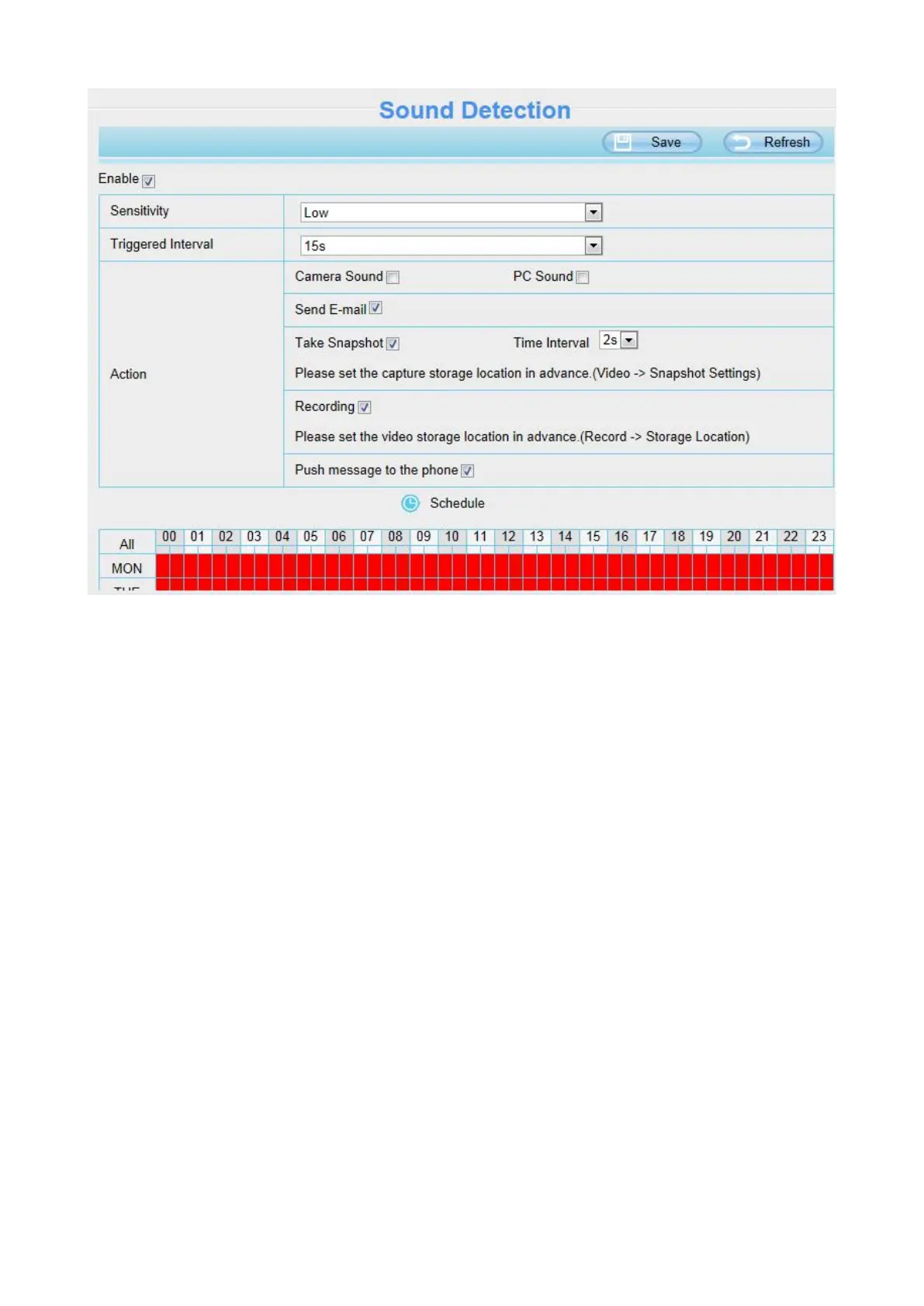 If the Sensitivity is set to Medium, the camera will detect the sound whose more than 65db.