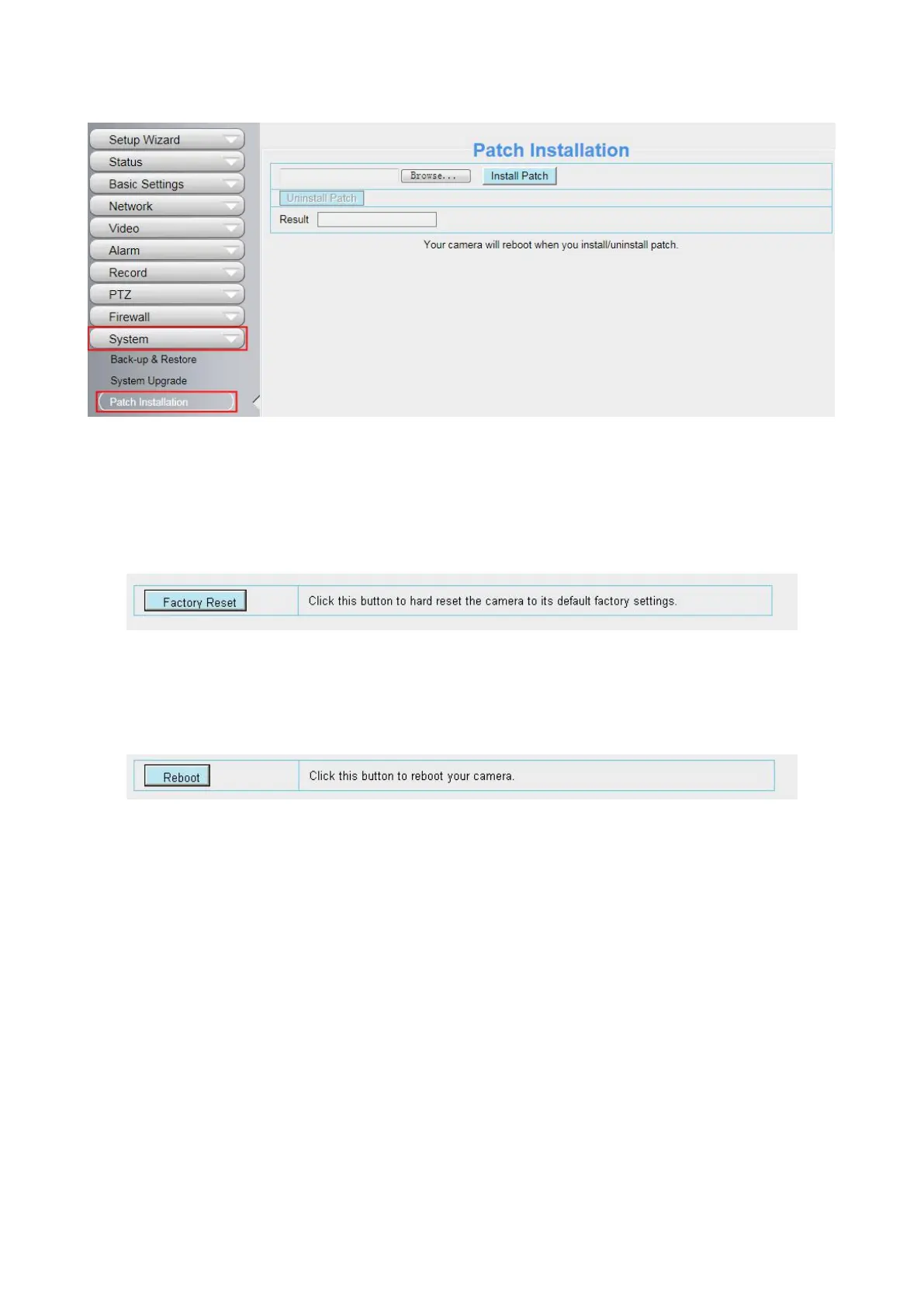 Click Reboot to reboot the camera. This is similar to unplugging the power to the camera.