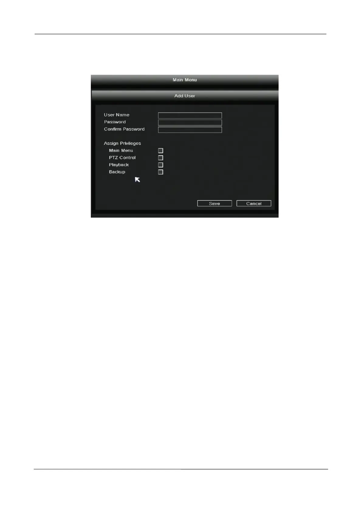 Click Add User to enter the Add User interface, On this page you can add to user, user password