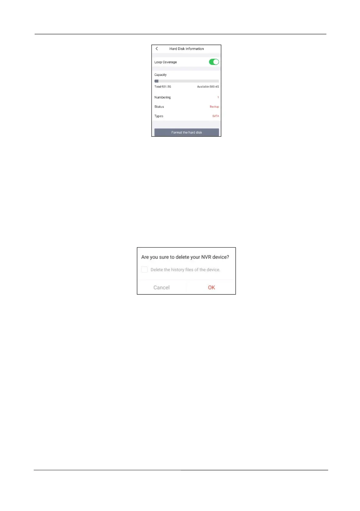 You can click Delete NVR button to delete the NVR from the app, or delete and keep