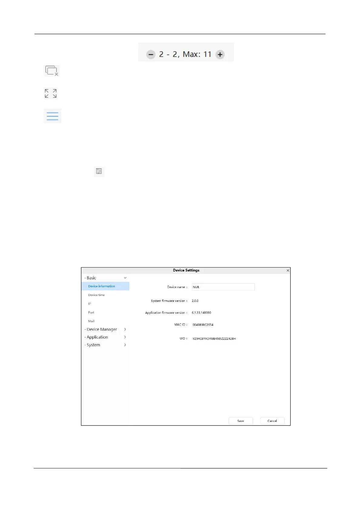 You can modify the device name. You can also see the basic information of the NVR.