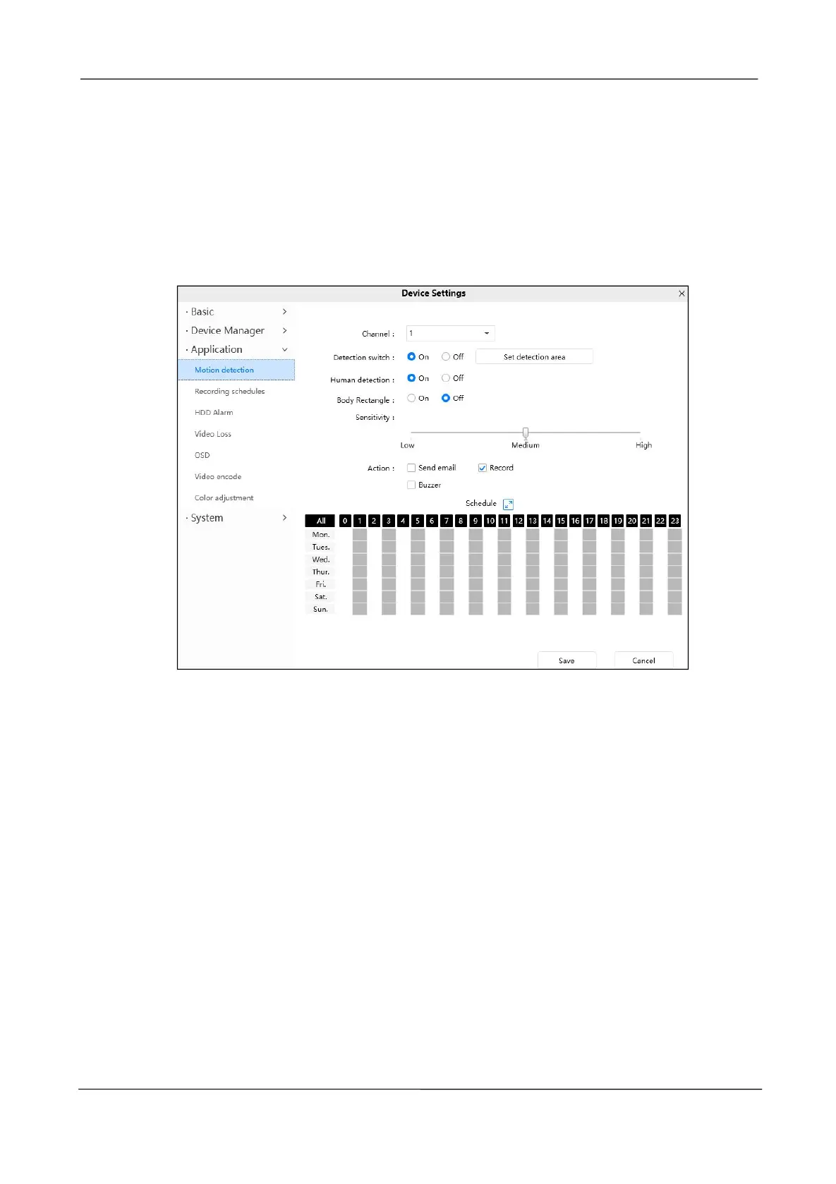 1 Channel---- Select the channel that needs motion detection.