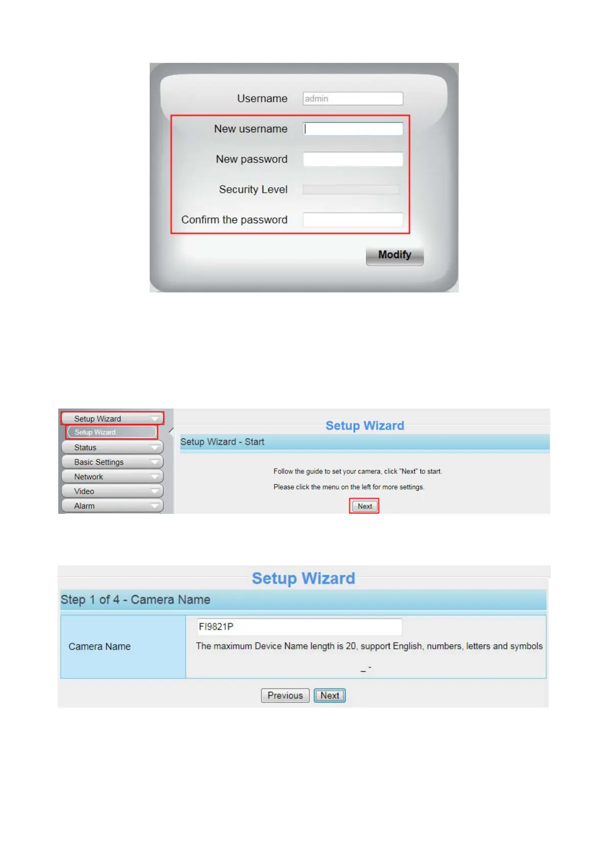 of camera, such as camera name, camera time, wireless settings, IP configuration.