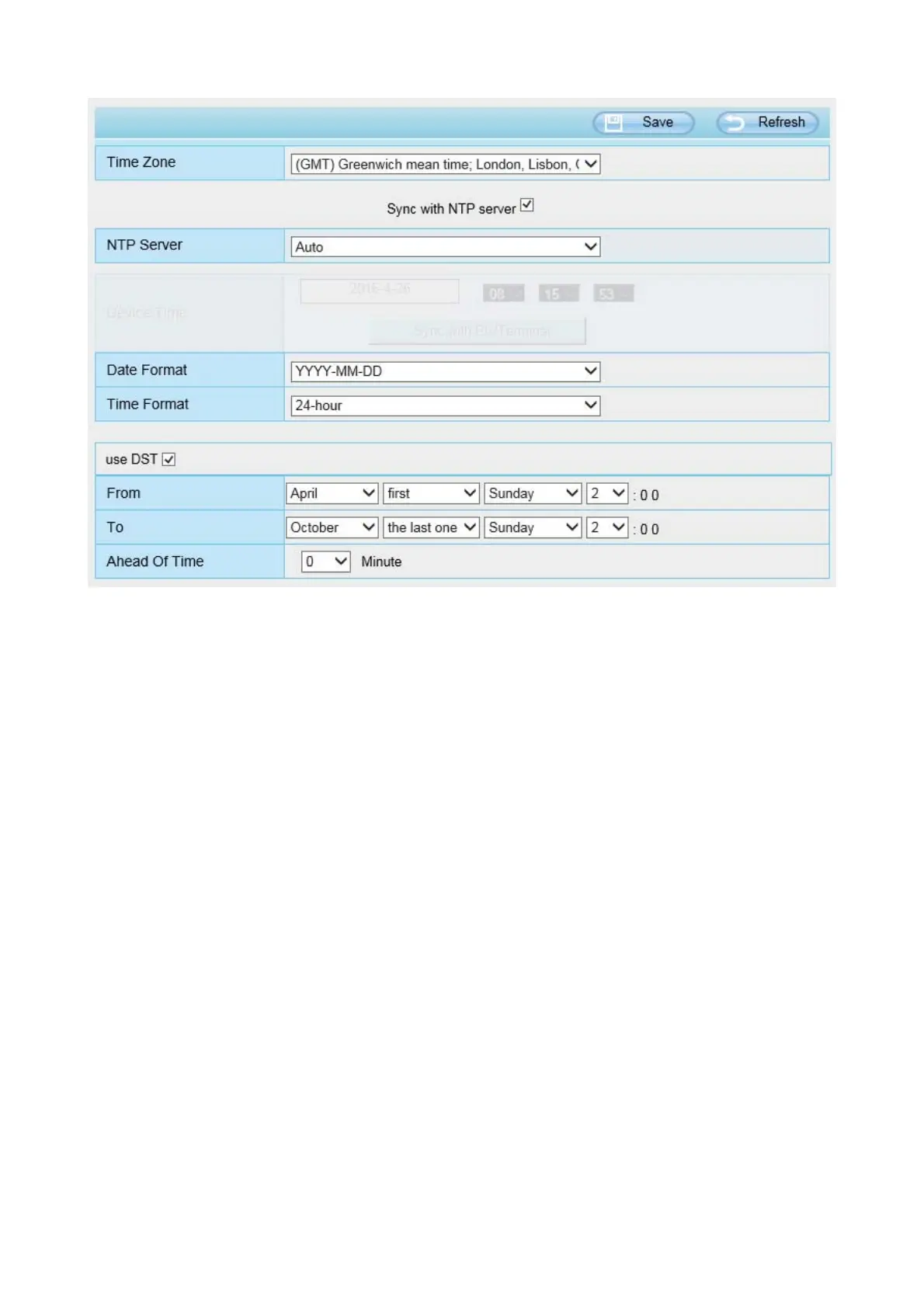 Sync with NTP server: Network Time Protocol will synchronize your camera with an Internet time server.