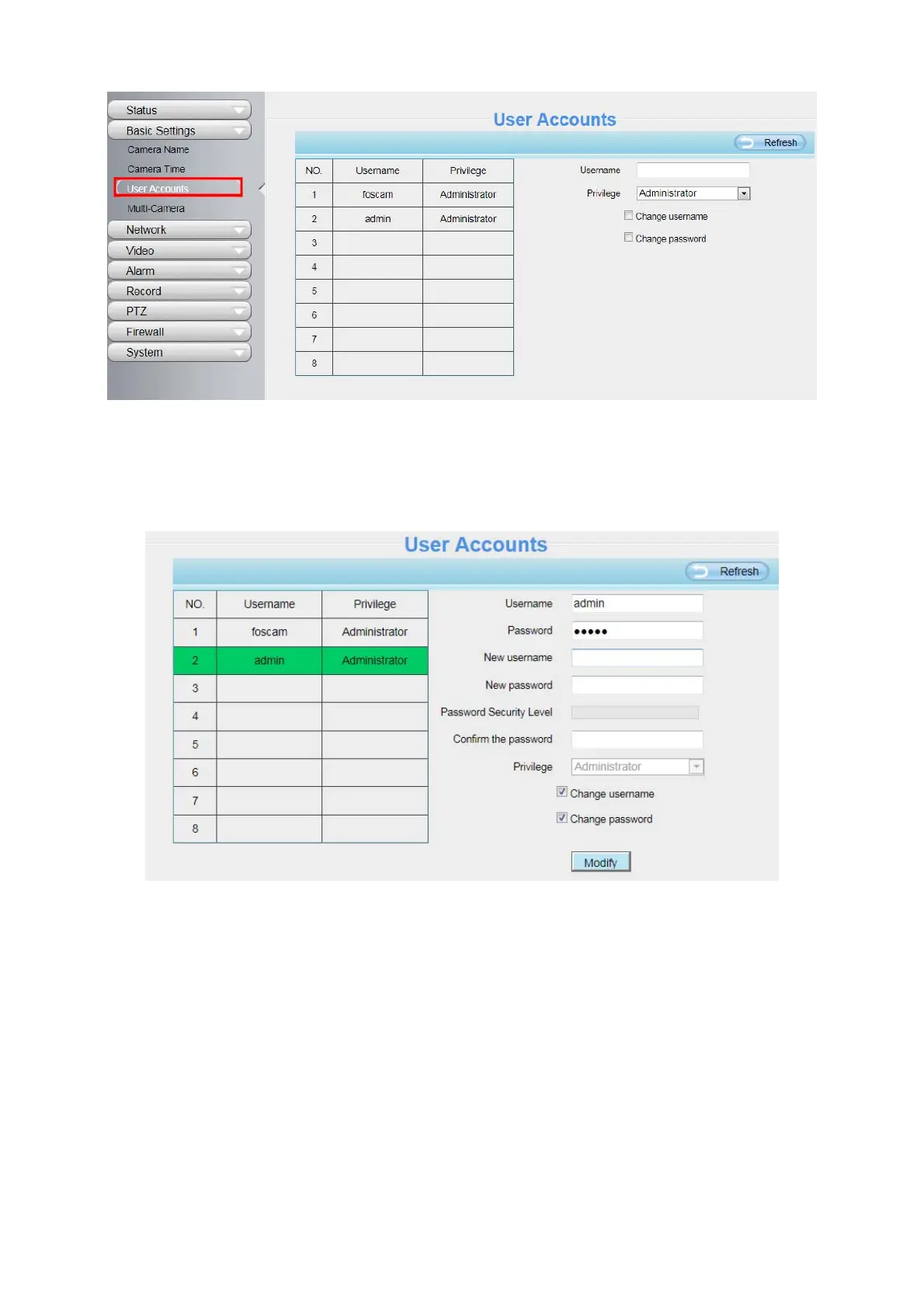 Select one blank column, then enter the new user name, password and privilege, last click Add to take