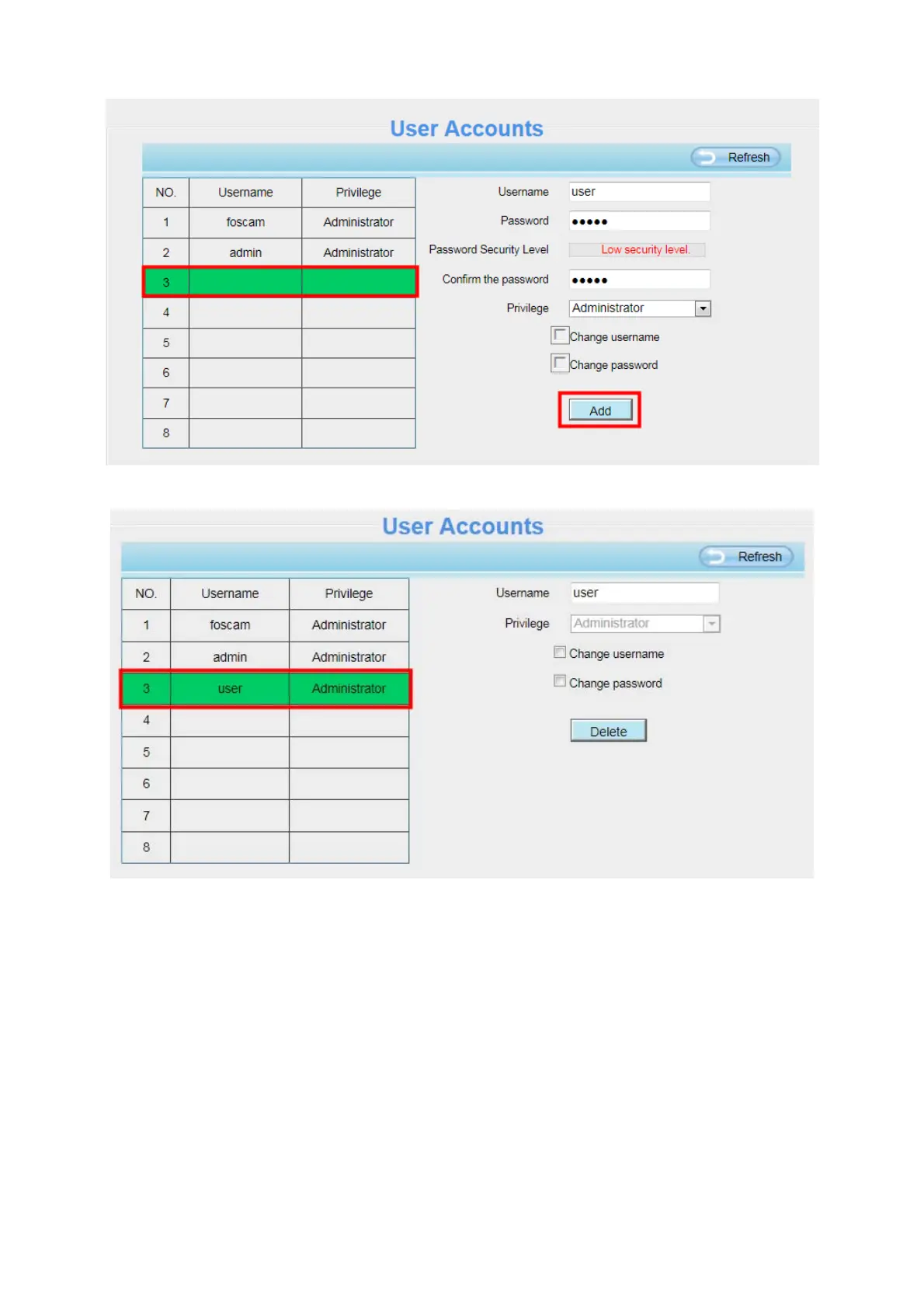 NOTE: The default admin account cannot be deleted, but you can add other administrator users.