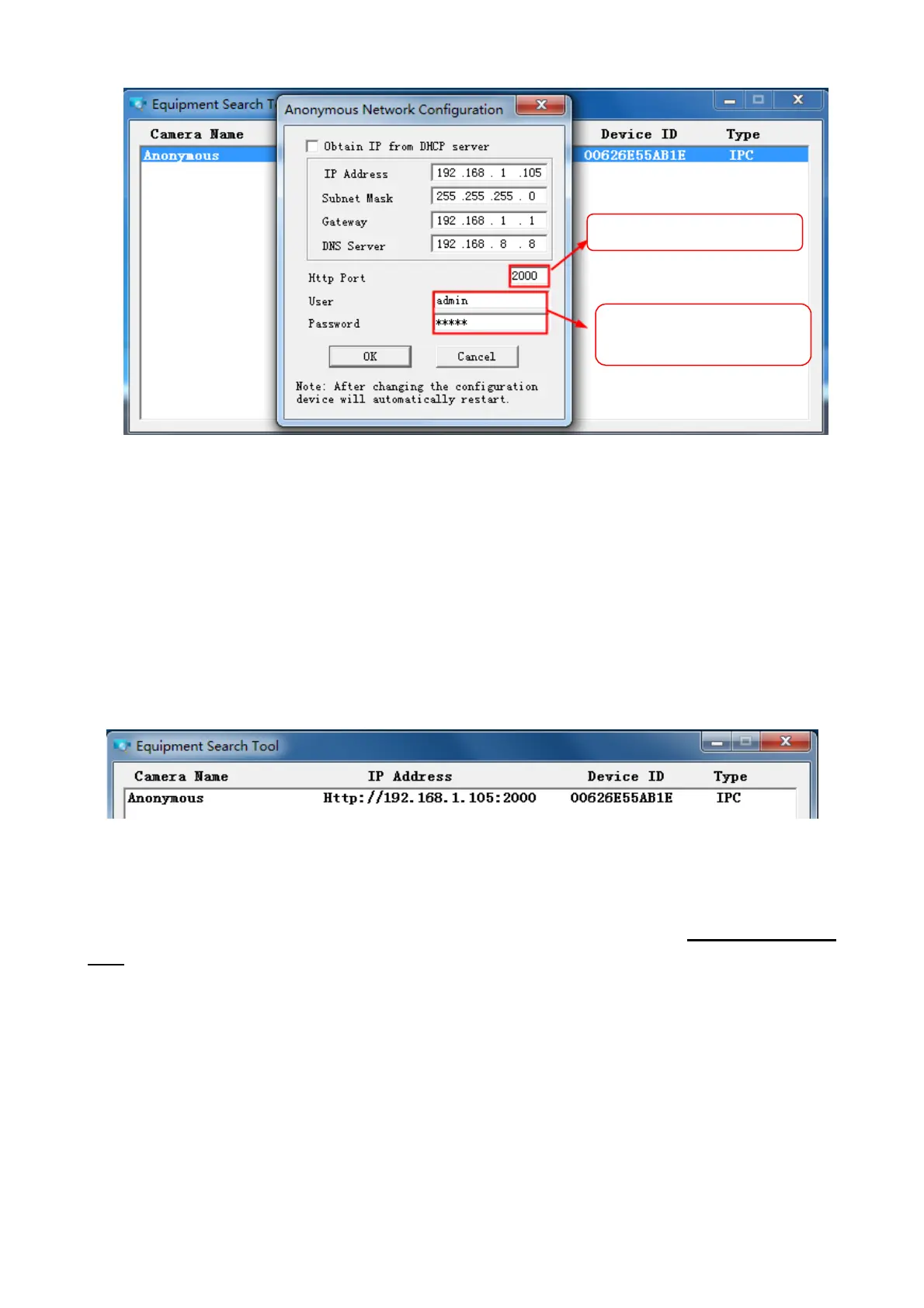example it was changed to 2000, so we see http://192.168.1.105:2000 in Equipment Search Tool. Also,