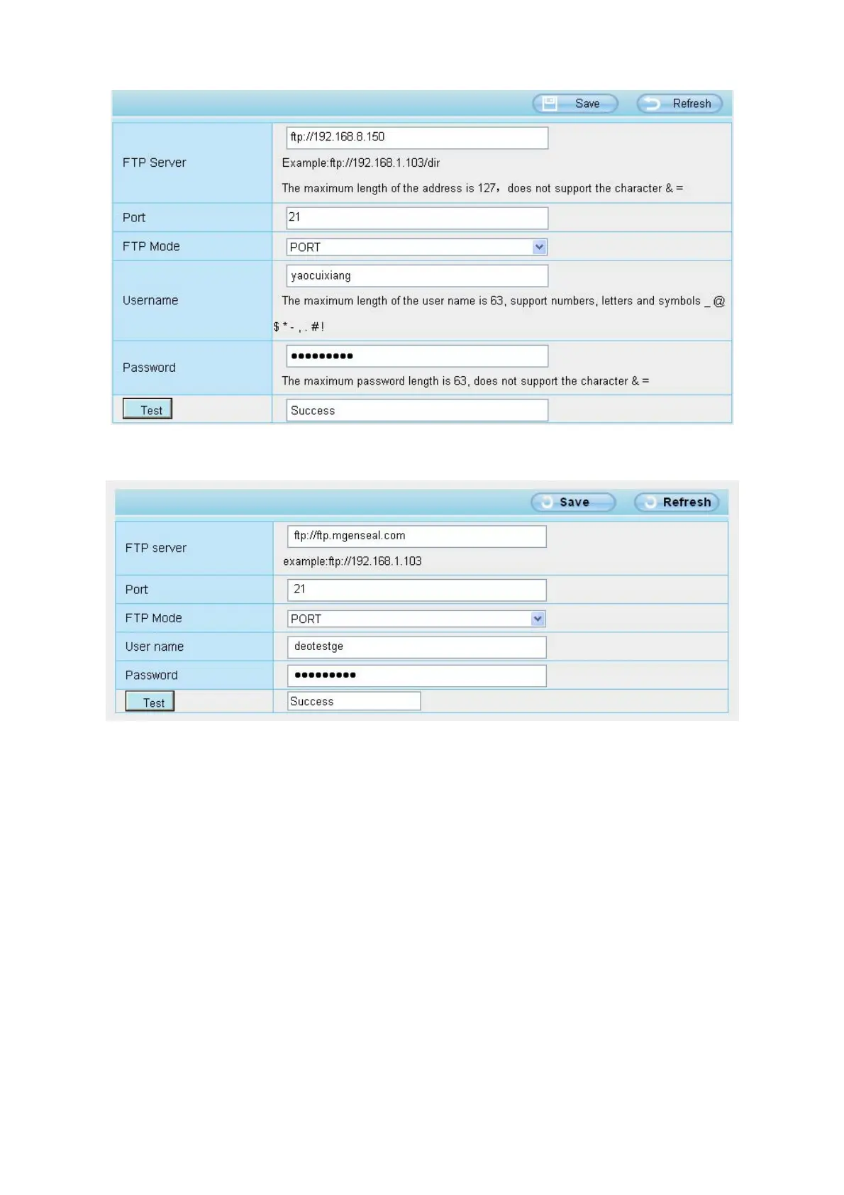 FTP server: If your FTP server is located on the LAN, you can set as Figure a.