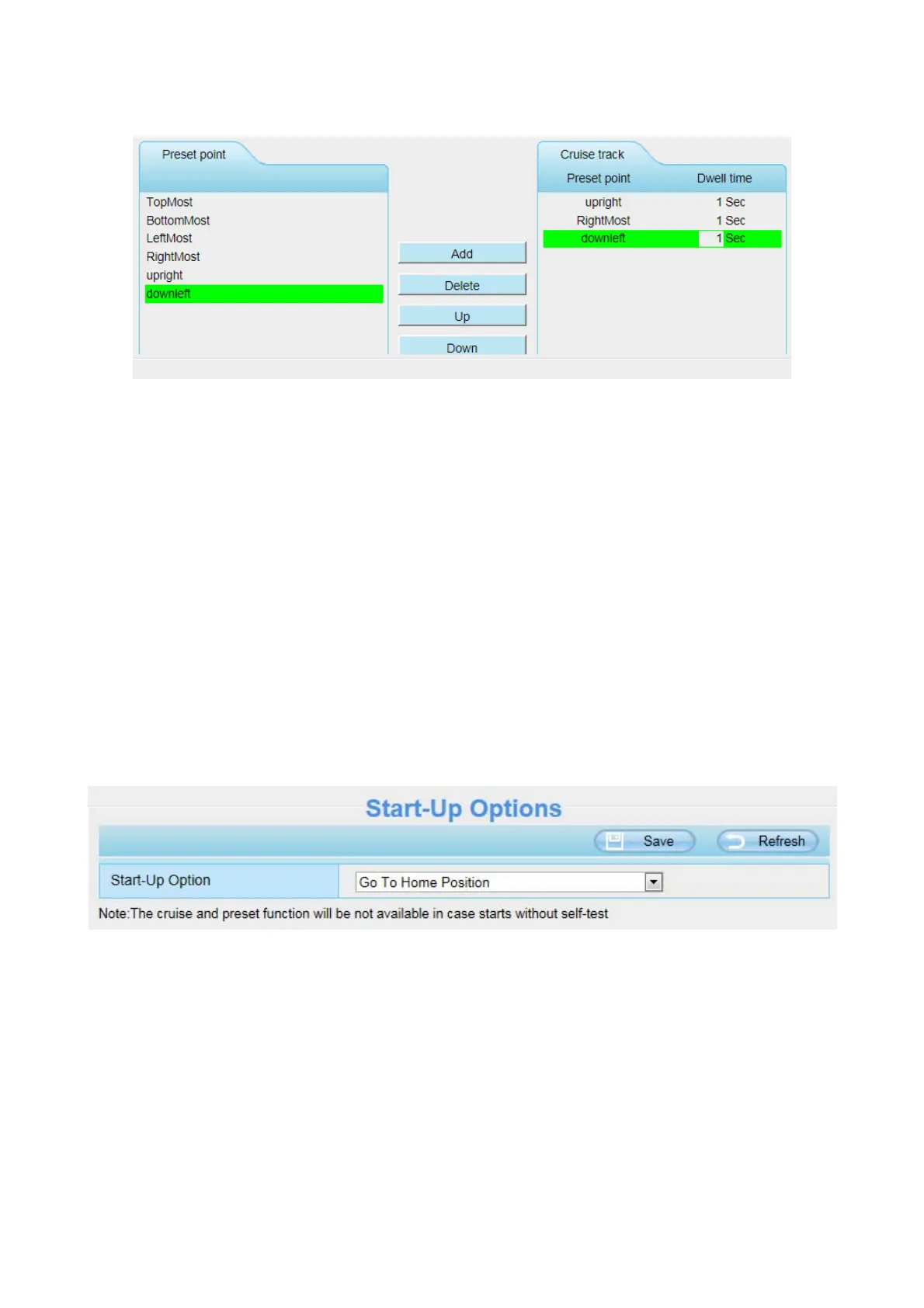 Move up/ down: Select one cruise track, adjust the order of preset points in one cruise track.