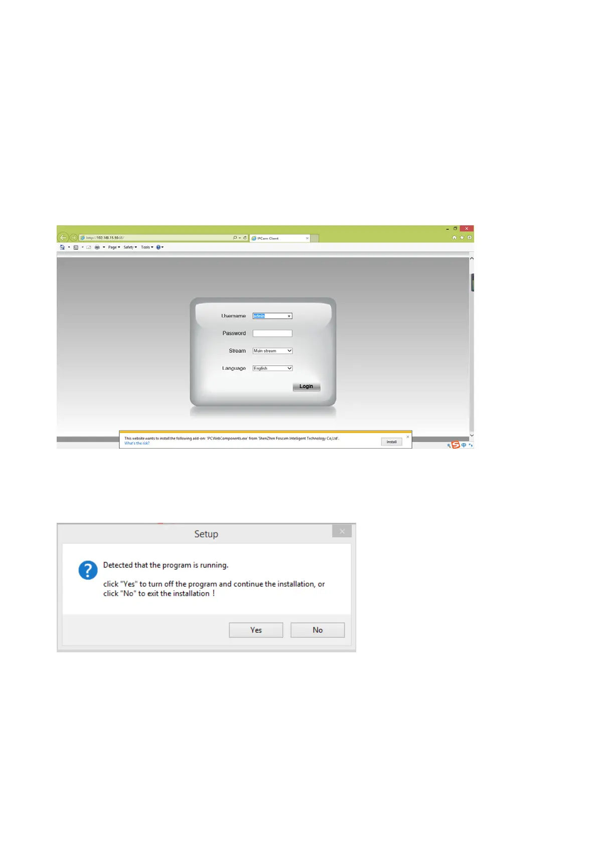 Step 1: User IE browser to log in the camera for the first time, it will prompt to ask your install the plugin