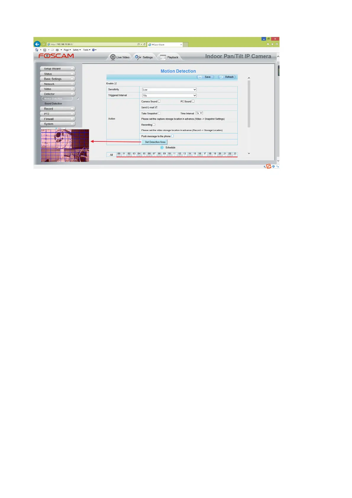 (3) Please DO NOT forget to set the alarm area, the detected area is covered by the red grids. Or for