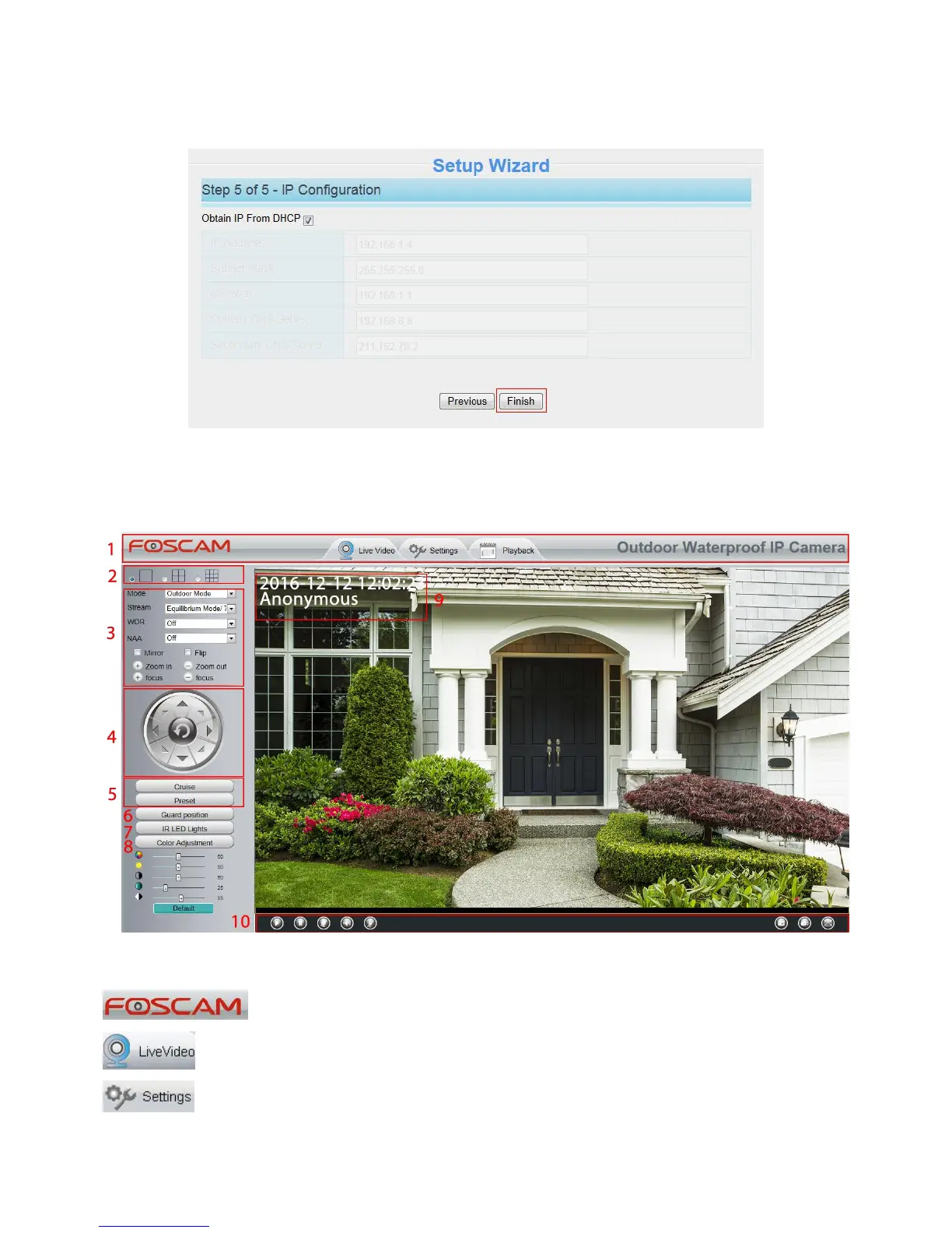 Section 1 FOSCAM Logo / LiveVideo / Settings / Playback Buttons