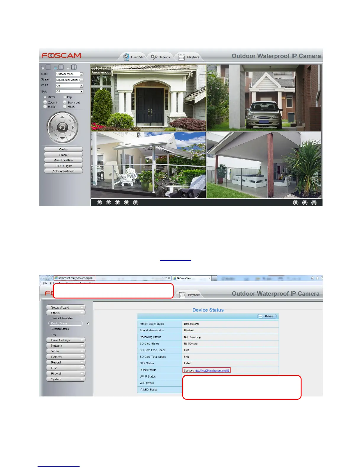 Login to the first camera using a DDNS domain name and port.