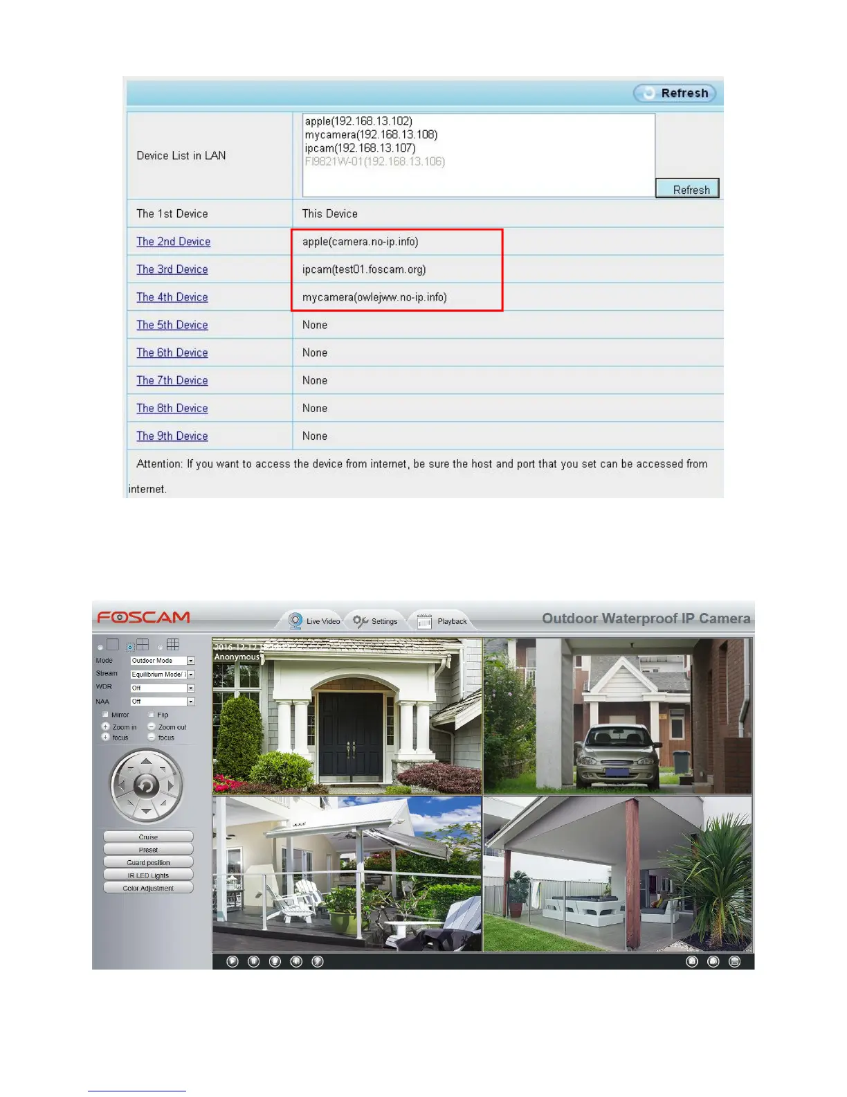 When you are away from home, you can use the first camera's DDNS domain name and port to view all the